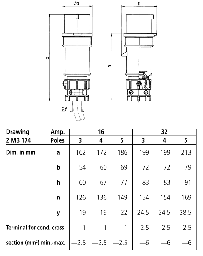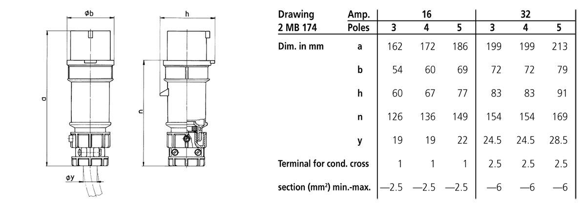 fits all CEE plugs, panel mounted and wall mounted inlets from 16 A, 3 p, up to 125 A, 5 p, not suitable for low voltage
